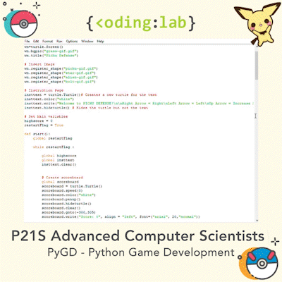 Explore game development with python and find out the endless possibilities of coding! One of our students created this Pokemon game during the hackathon of our P21S-PyGD - Python Game Development course. (Click image to enlarge)